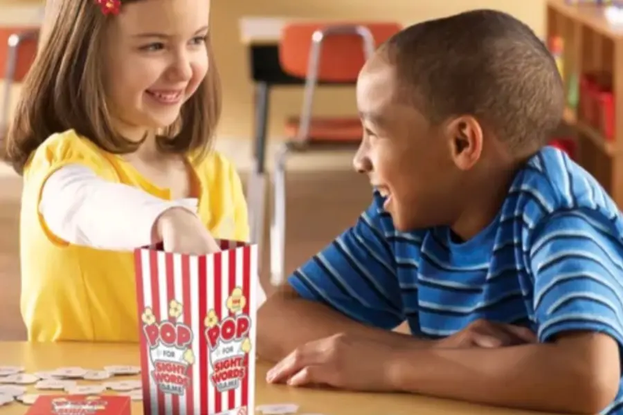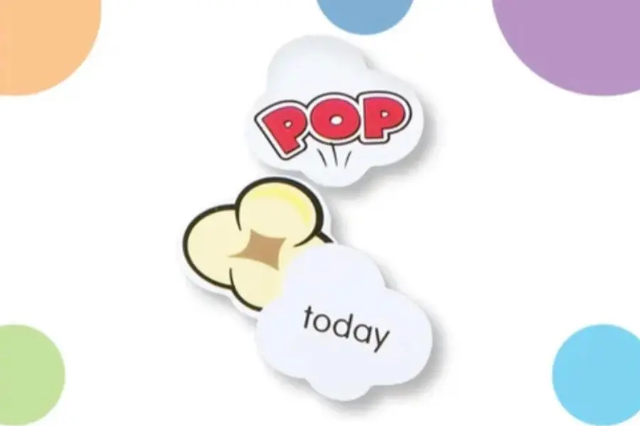 ポップコーンの形をした箱にサイトワードが書いてあるカードが入っているので、順番にカードを引いていって読めたらそのカードをもらえます。